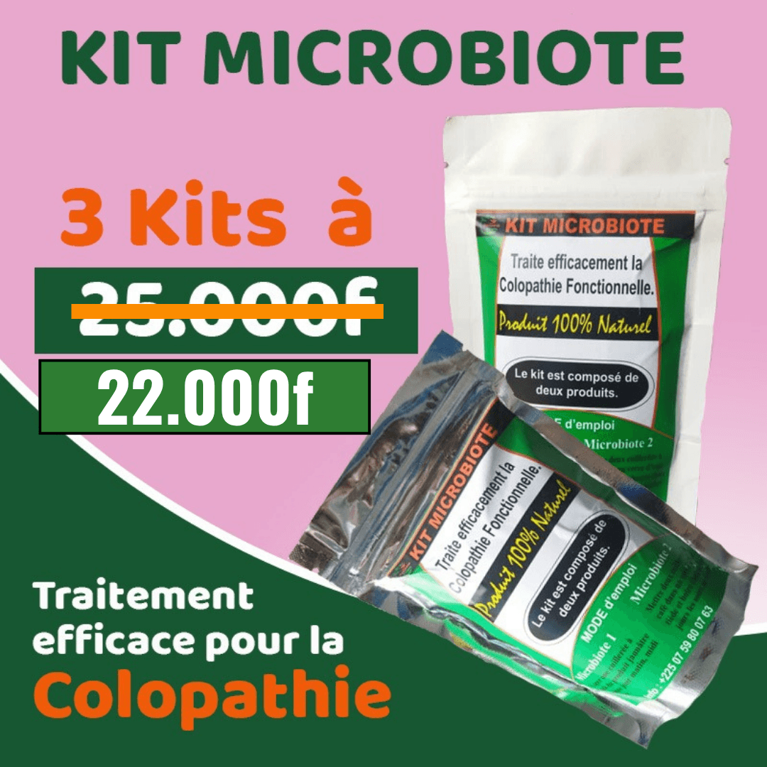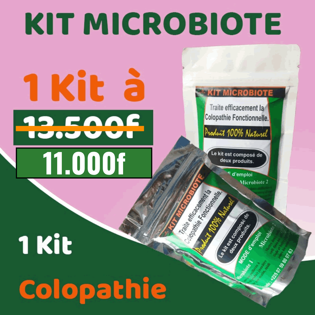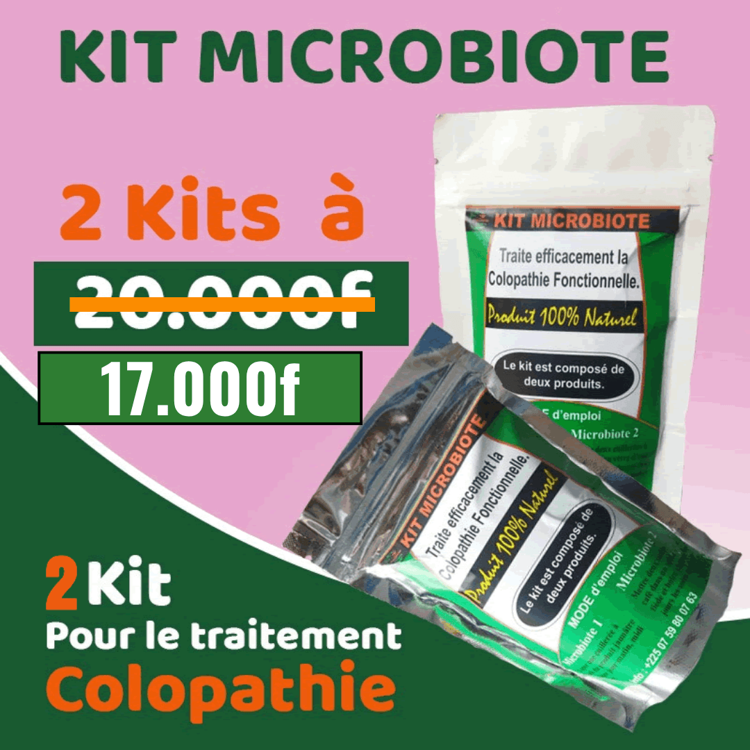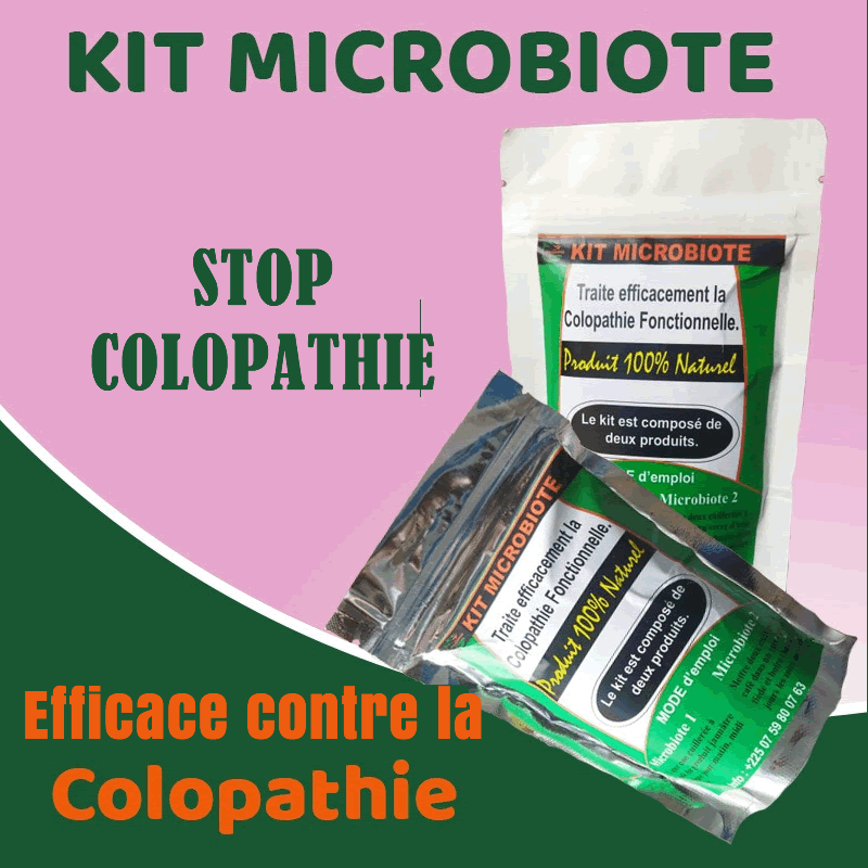 MICROBIOTE, est un kit composé de 2 produits(Microbiote 1 et Microbiote 2) très éfficaces contre la colopathie.